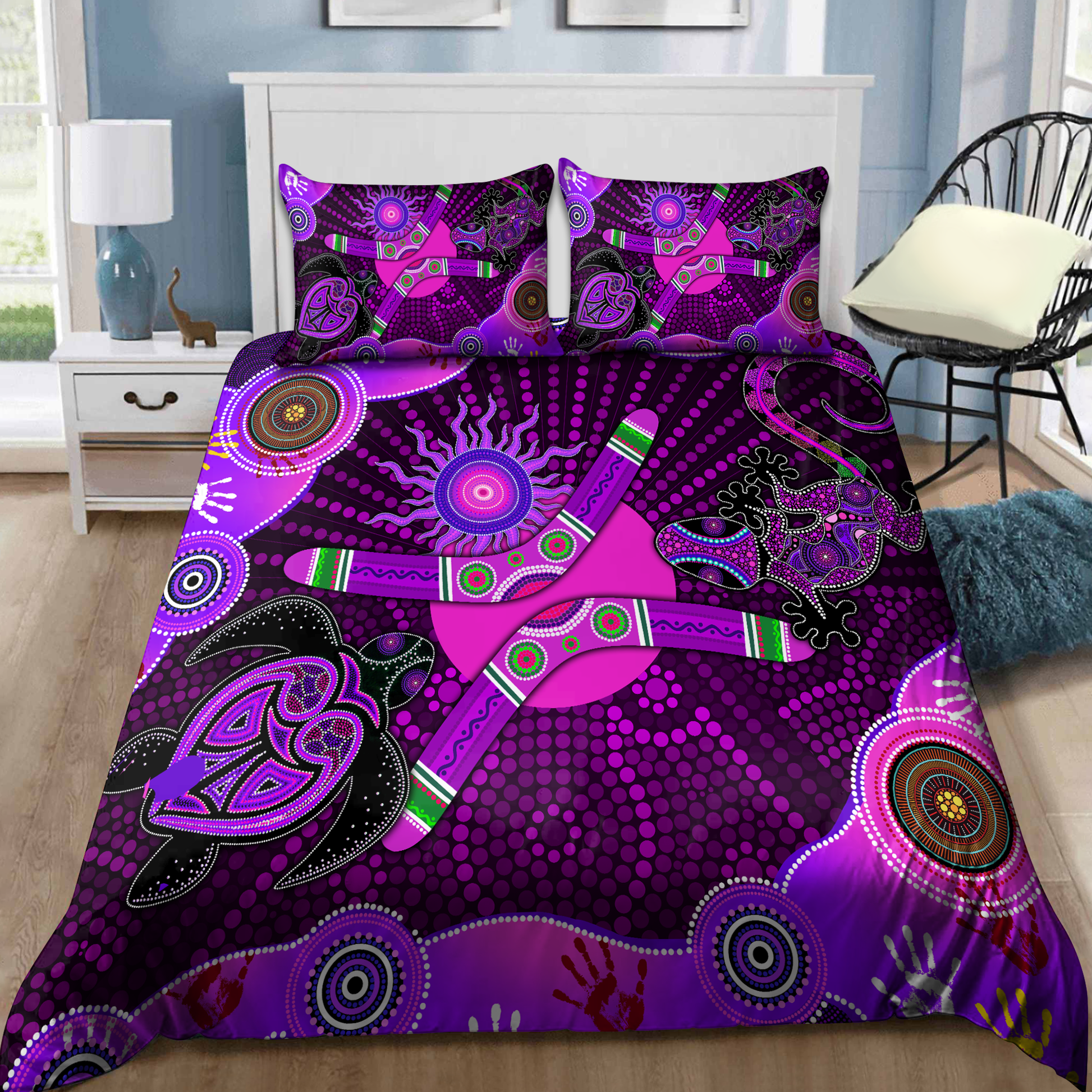 Aboriginal Naidoc Week 2021 Purple Turtle Lizard Sun Bedding set