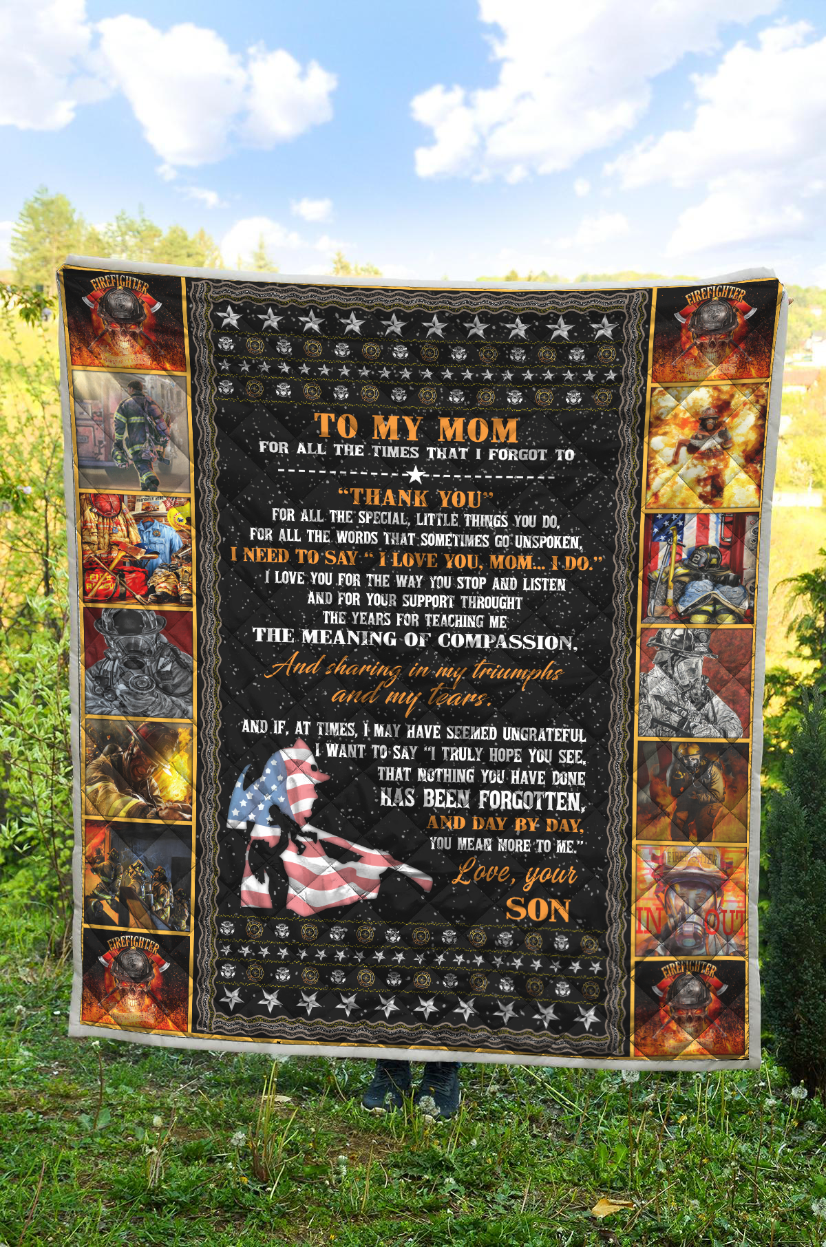 Love Mom Firefighter Son Quilt JJW03092001