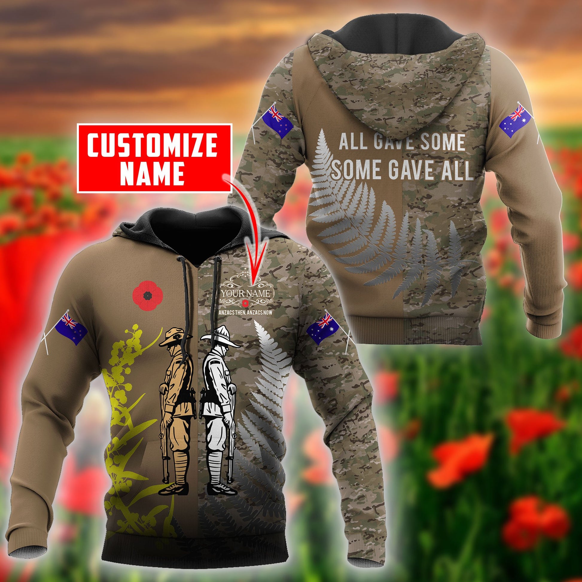 Custom name Anzac day All gave some some gave all 3D printed shirts