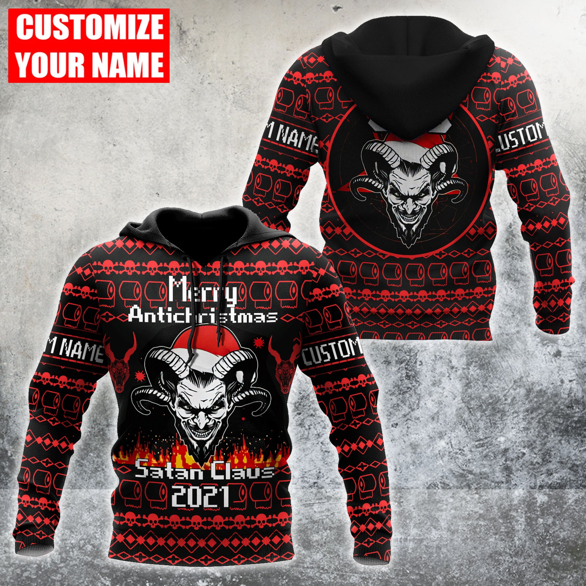 Customize Name Skull Satanic 3D All Over Printed Unisex Shirts