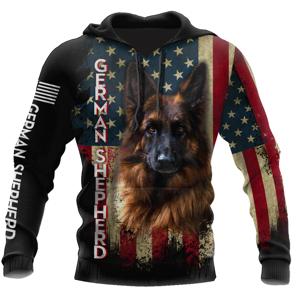 German Shepherd American Flag 3D All Over Print Hoodie