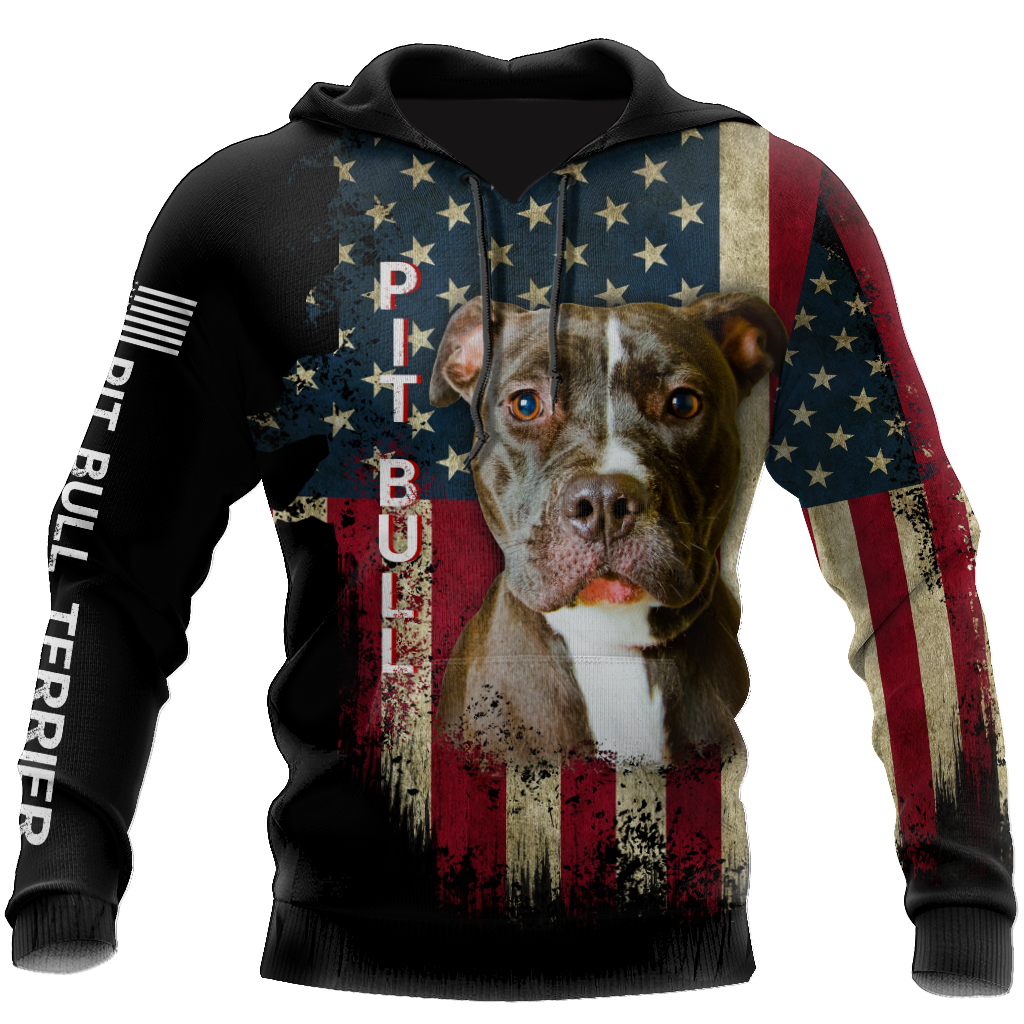 Pit Bull Terrier American Flag 3D All Over Print Hoodie TR0510202